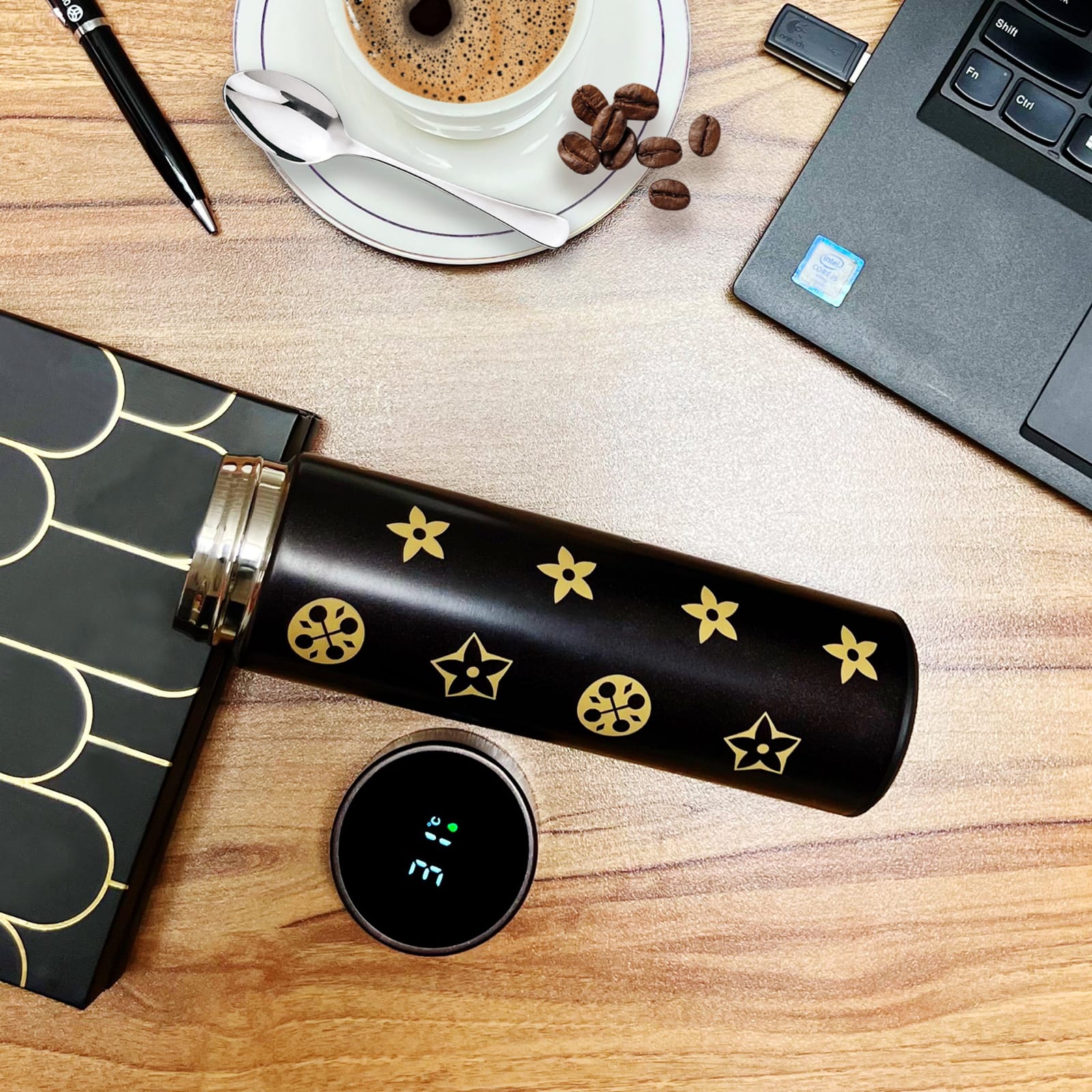 This stylish LV design water bottle comes with double-layer vacuum insulation to keep the liquid hot or cold with digital temperature look. Its lid features a small LED screen touch it lightly to know the current water temperature. It keeps you hydrated and its compact size makes it easy to carry..